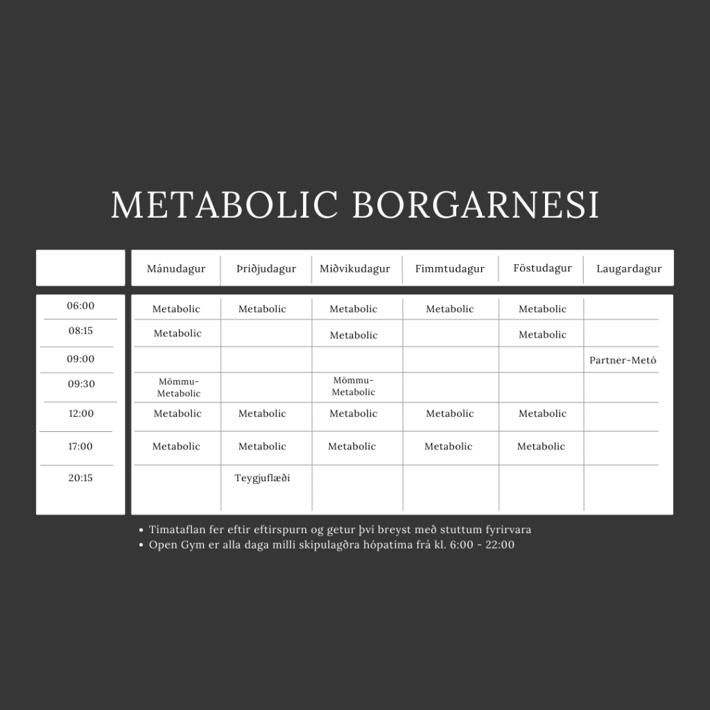 Allir iðkendur hafa aðgang að öllum tímum í töflu og mega mæta eins oft í viku og vilja. Allir bóka pláss í tíma í gegnum app sem iðkendur fá aðgang að þegar keypt er áskrift. Hámark 15 manns í Metabolic en 12 í Ketilbjöllur og Lyftingar.
